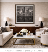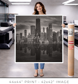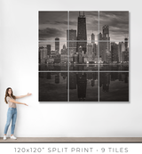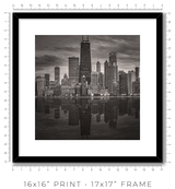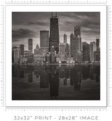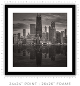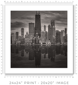 In a dense city, buildings crowd each other, and you crowd them. You see facades, not forms. You see surfaces, not structures. The lake pulls you back and reveals the whole composition at once. Morning light softens the steel, turning it silver. Midday sharpens the geometry until you can read every setback and structural decision. Dusk collapses the detail into silhouettes, and the silhouettes are enough: each tower still reads as itself, still speaks in its own architectural language against the darkening water. Winter strips everything to monochrome, and you see Chicago's essential grammar: line, proportion, weight, light.